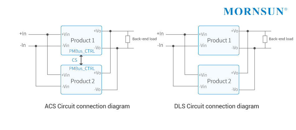 When upgrading the communication system or increasing its capacity, it is usually necessary to use multiple power supplies in parallel to shunt the output current. This series offers two options for current sharing: ACS and DLS. In ACS mode, the output ±Vo and PMBus_CTRL pins of each product must be connected in parallel. This mode is suitable for applications that require high current equalization accuracy and output voltage. DLS mode, on the other hand, doesn't require PMbus and only needs the output ±Vo pins to be connected in parallel. This mode is ideal for situations that don't require digital communication and is more convenient for certain applications.